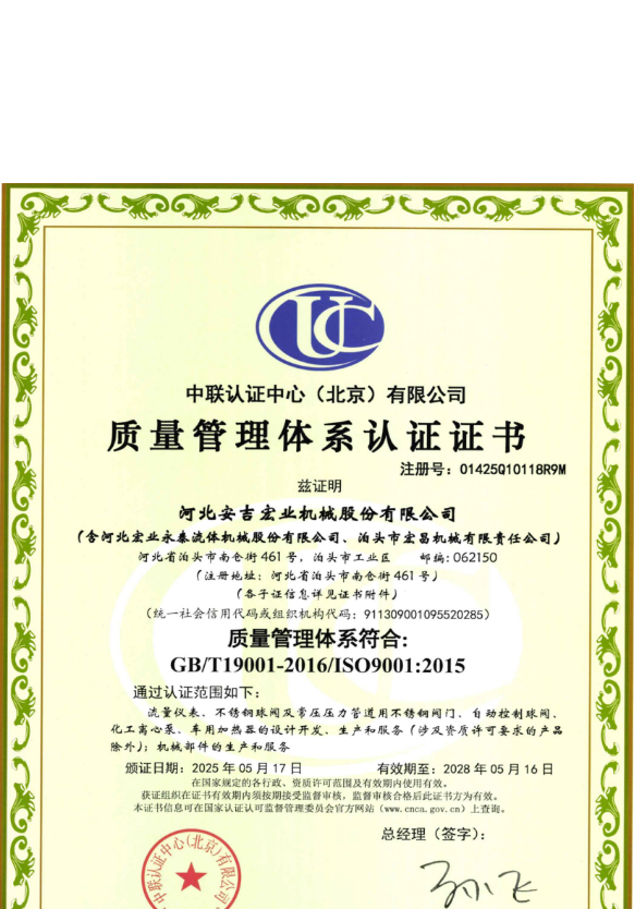 河北宏業(yè)永泰流體機(jī)械股份有限公司(原泊頭儀表總廠),生產(chǎn)流量儀表產(chǎn)品有三十多年的歷史。參加了節(jié)流裝置國家標(biāo)準(zhǔn)GB/T2624-1981的起草工作。公司占地12萬平方米,注冊資金3500萬元。主要產(chǎn)品有節(jié)流裝置、儀器儀表、各類不銹鋼閥門、各種化工離心泵。公司取得了ISO9001:2015質(zhì)量體系認(rèn)證、挪威船級社CE認(rèn)證、出口產(chǎn)品Emark認(rèn)證、特種設(shè)備制造許可證等。同時(shí)河北宏業(yè)永泰還是中石化物資供應(yīng)商網(wǎng)絡(luò)成員,取得了中石油、中海油物資供應(yīng)商準(zhǔn)入證,是中國神華集團(tuán)、華電集團(tuán)、大唐集團(tuán)、中廣核等公司合格供應(yīng)商。產(chǎn)品出口日本、阿爾及利亞等國家。